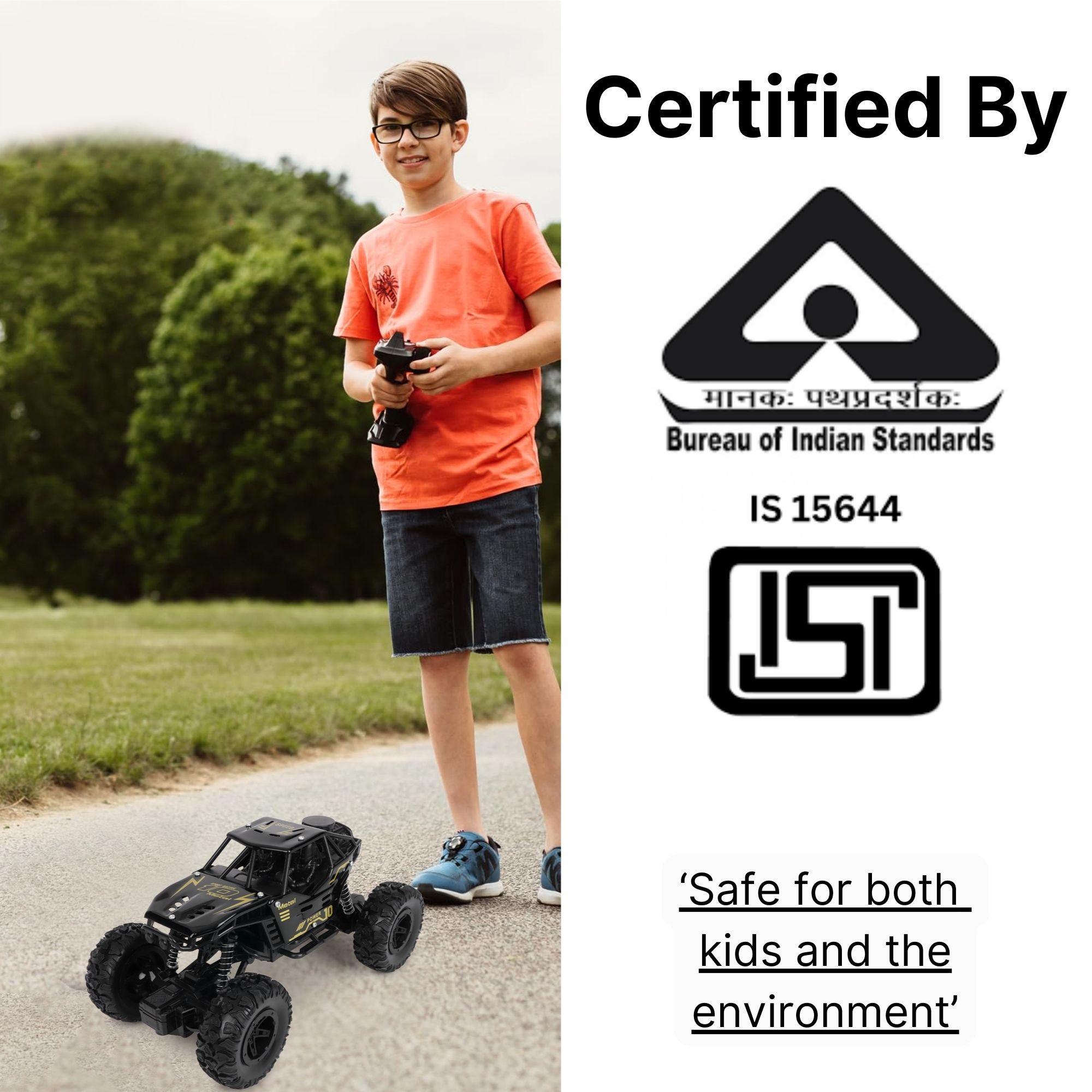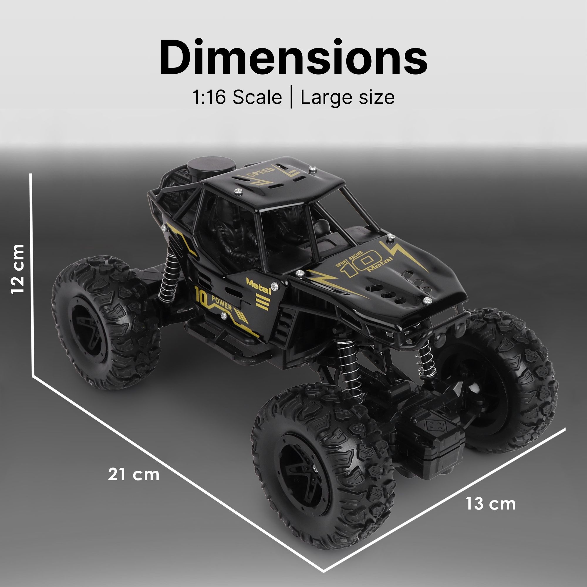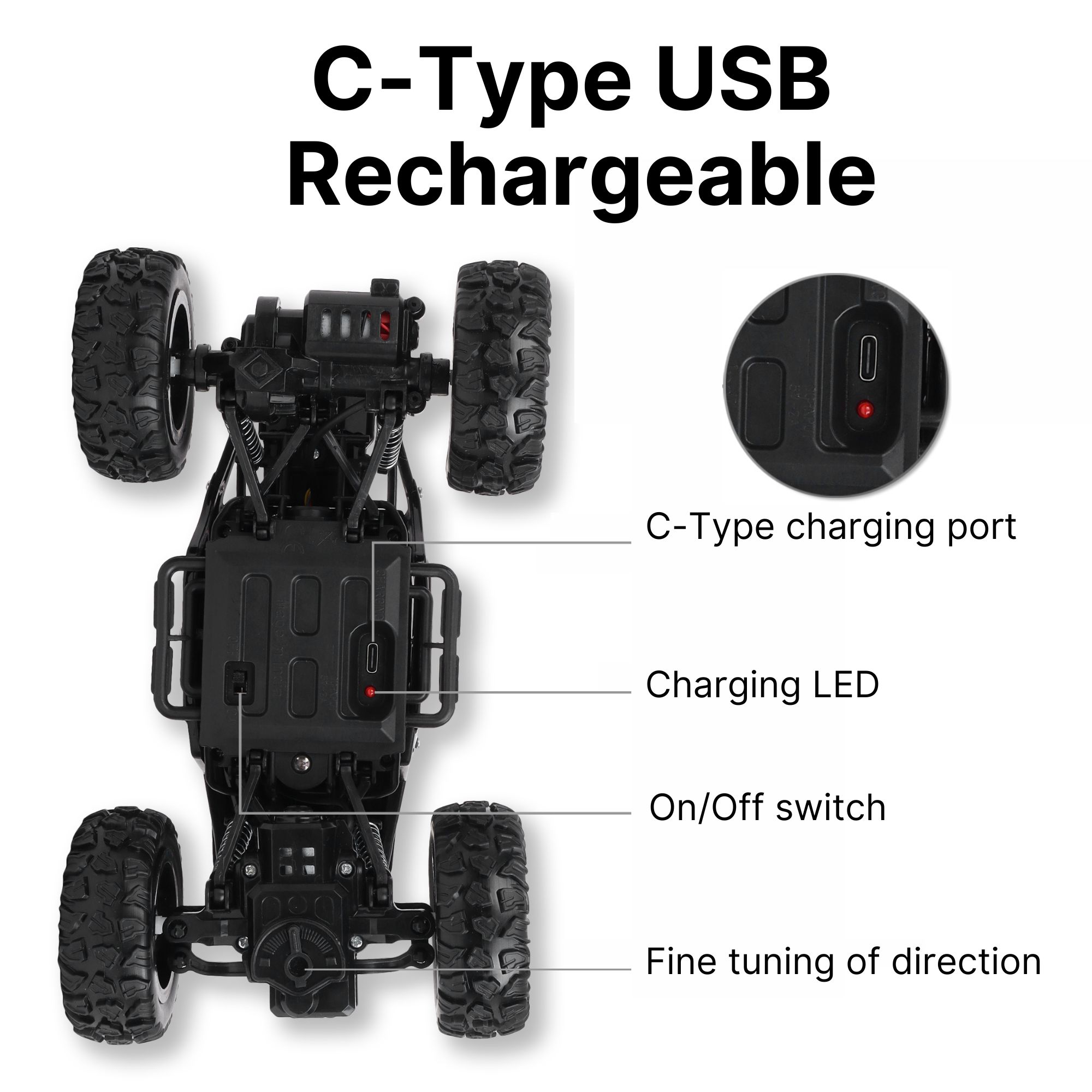 INFINI EV Offroader High Speed RC Car with Smoke & Spray | Certified Durable & Safe | Styled as Rock Crawler/Monster Truck | USB C-Type Rechargeable Remote Control Car for Kids | Made in India, Black